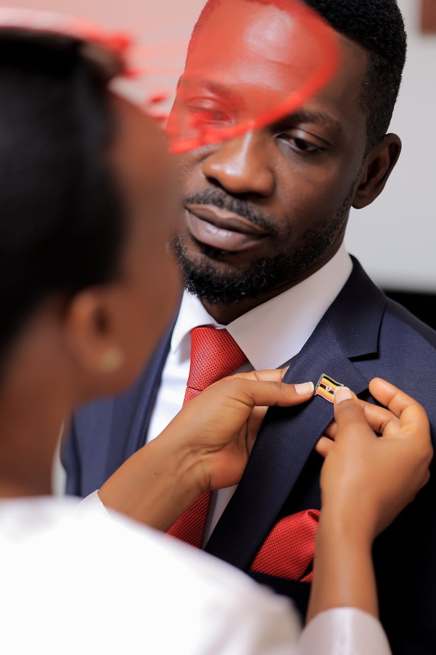 The photos of Bobi Wine and his wife, Barbie Itungo, dressed in striking red, white, and navy blue have already generated excitement among supporters online, building anticipation ahead of what is expected to be a major political moment this afternoon.