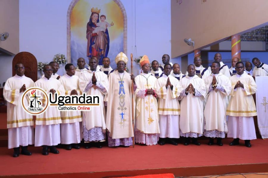 The newly ordained priests are Rev. Fr. Kato Ignatius from Seeta Parish, Rev. Fr. Gilbert Lubwama from Kayunga Parish, Rev. Fr. Ssali Anthony from Bukerere Parish, Rev. Fr. Mugalu Alex from Nkokonjeru Parish, Rev. Fr. Ssebuyungo Robert and Rev. Fr. Tenywa Francis from Kasangalabi Parish, and Rev. Fr. Ssempa Emmanuel from Lugazi Cathedral Parish.
