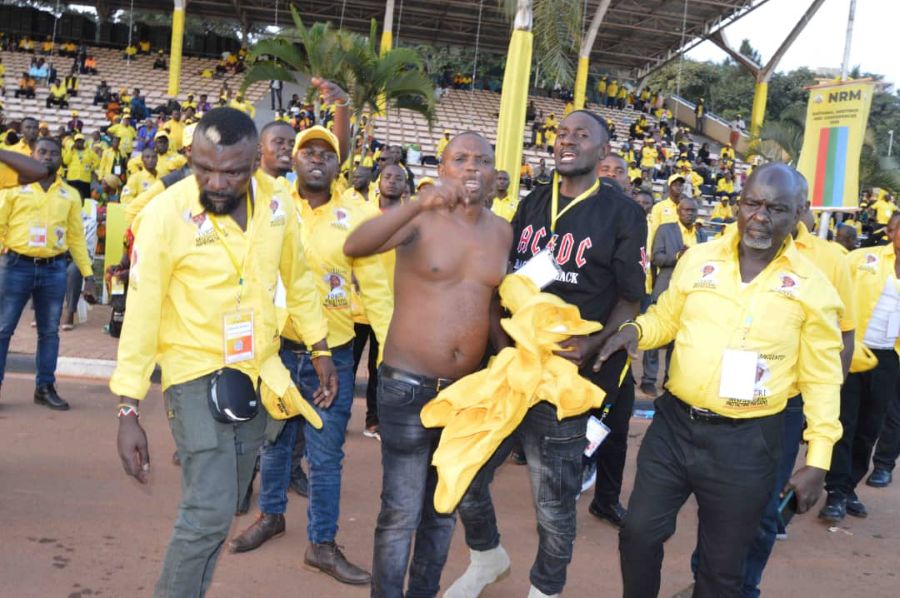 Speaking after calm was restored, NRM Electoral Commission chairperson Dr. Tanga Odoi assured delegates that the elections would proceed as planned and urged discipline.